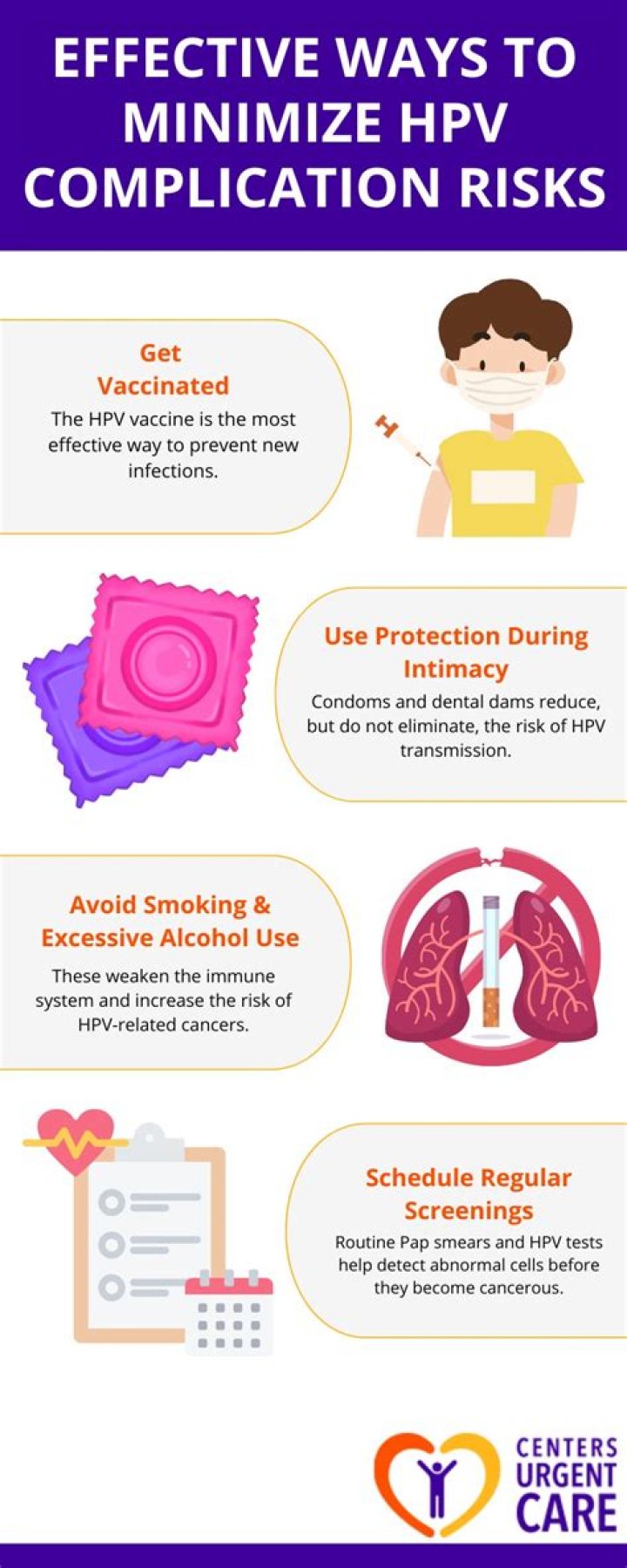 - Engage in regular screenings and Pap tests for early detection.