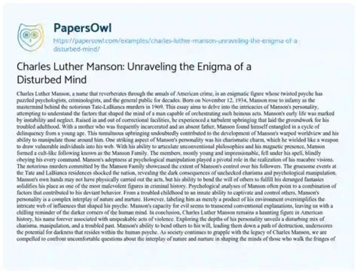 The life of young Charles Manson serves as a cautionary tale about the importance of stable and nurturing environments for children. His story highlights the potential consequences of neglect, abuse, and the absence of positive role models. Understanding the factors that contributed to Manson's transformation into a cult leader can help us recognize the signs of instability in young individuals and the need for intervention.