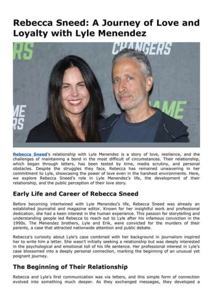 Join us as we embark on a detailed journey through the life of Rebecca Sneed Menendez, examining her biography, personal insights, and the reasons behind her rising prominence. Whether you are familiar with her name or just discovering her story, there is much to learn and appreciate about this extraordinary individual.